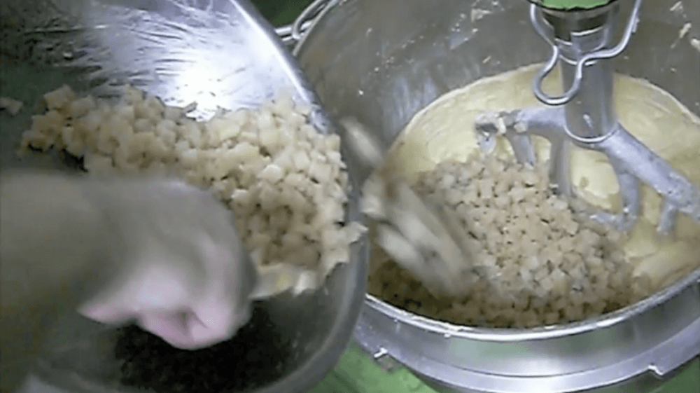 レンコンは惜しみなく、生地に入れ込みます。どこから切ってもレンコンに必ず当たるのがこのお菓子の自慢!
