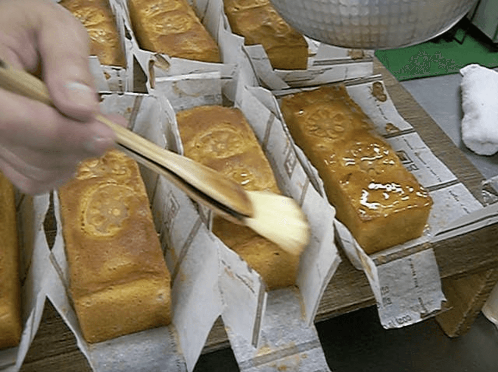 窯でしっかり焼きあげてからは、仕上げにアプリコットジャムを表面に塗って完成です。